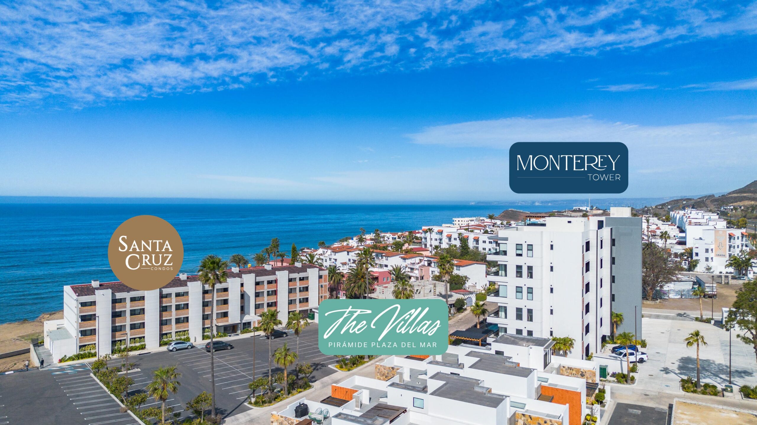 Pirámide del Mar es un exclusivo desarrollo en Playas de Rosarito que ofrece una experiencia única frente al mar. Integra tres zonas – Condos Santa Cruz, Torre Monterrey y casa privadas. Cada espacio combina confort, diseño contemporáneo y vistas espectaculares al océano.
